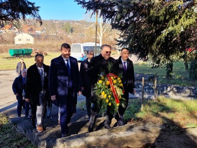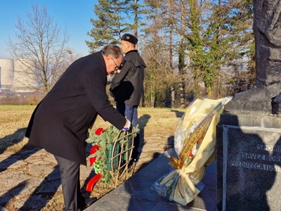 Nakon potpisivanja Kolektivnog ugovora u Tuzli, delegacije su danas položile cvijeće na Spomen obilježje Husinskim rudarima u naselju Husino, kao i Spomeniku rudarima palim u Husinskoj buni i revoluciji, te Spomeniku poginulim rudarima rudnika Mramor.
