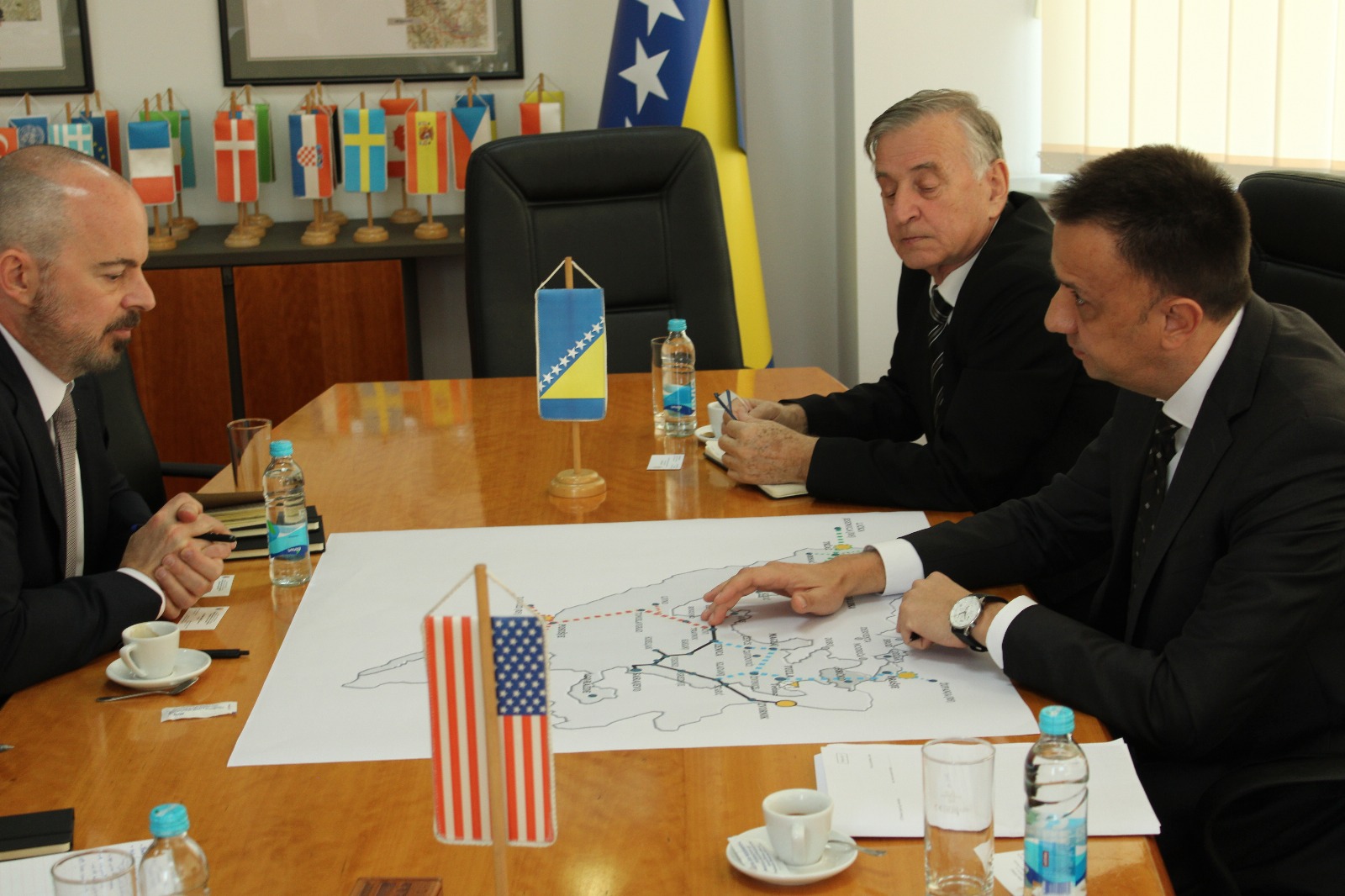 Federalni ministar energije, rudarstva i industrije Vedran Lakić sastao se danas sa otpravnikom poslova Ambasade Sjedinjenih Američkih Država u BiH, Johnom Ginkelom. Centralna tema sastanka bila je ubrzanje implementacije projekta Južne interkonekcije – ključnog strateškog pravca za energetsku sigurnost Bosne i Hercegovine.